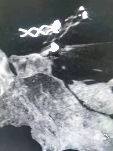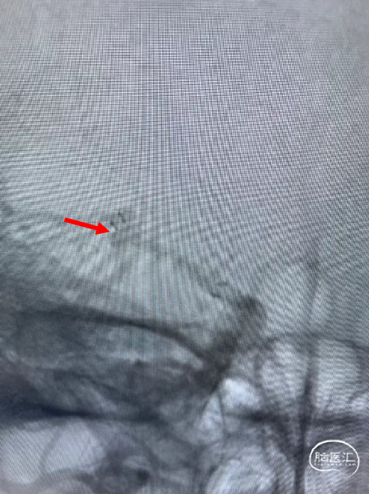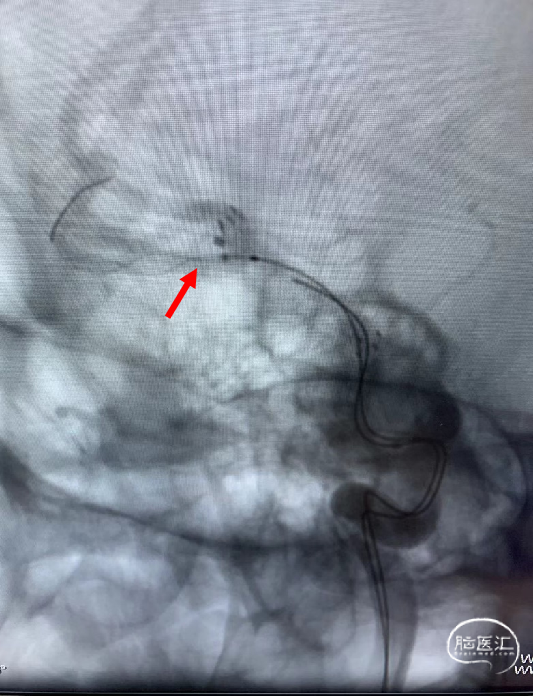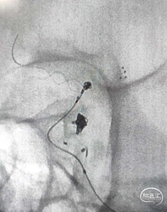 送入第二枚1.5*2的弹簧圈致密栓塞动脉瘤。