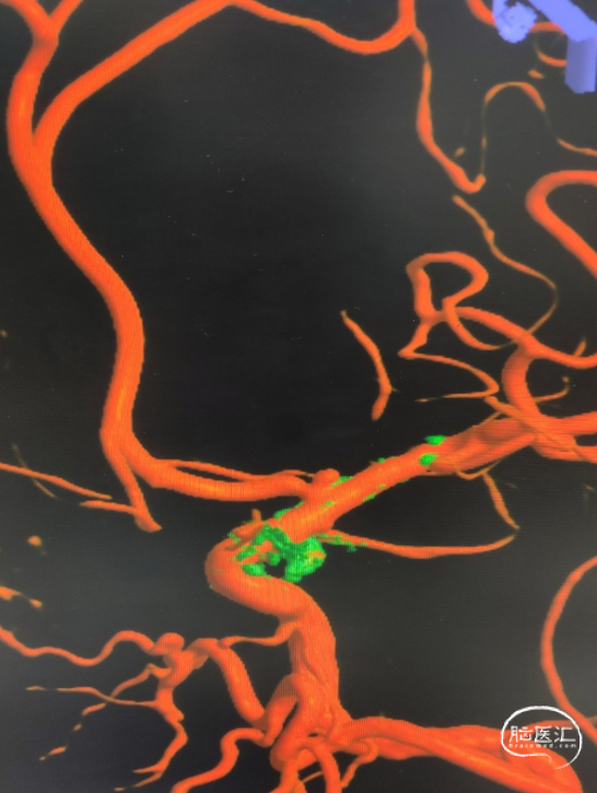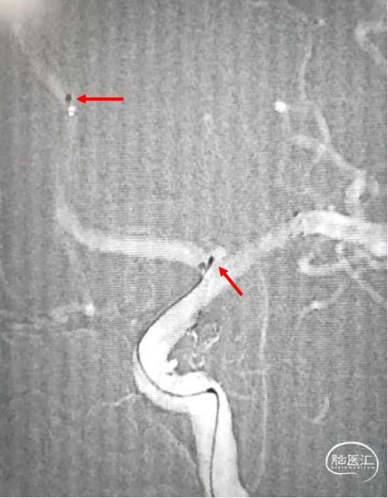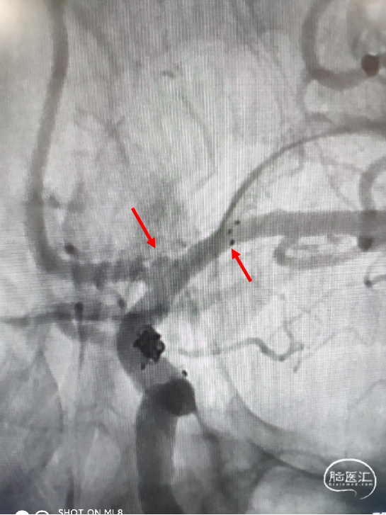 临床诊断:右侧大脑中动脉分叉部宽颈动脉瘤;右侧大脑中动脉狭窄支架植入术后。