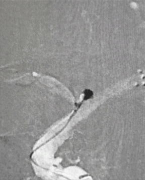 选择具有较高金属覆盖率且没有无效工作端的LEO+Baby编织型支架,能为术者提供更多的操作空间,更好完成支架近端定位;同时其高的金属覆盖率可降低复发可能。