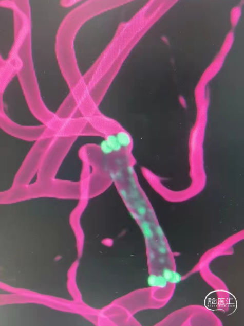 2. 穿Neuroform EZ支架网孔,将支架微导管及弹簧圈微导管分别超选到位。