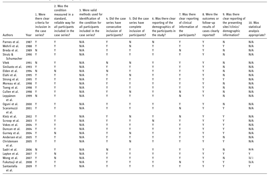 表1. 使用JBI关键评估工具对方法学质量进行评估