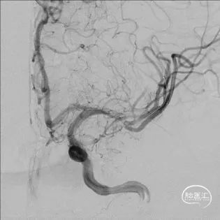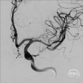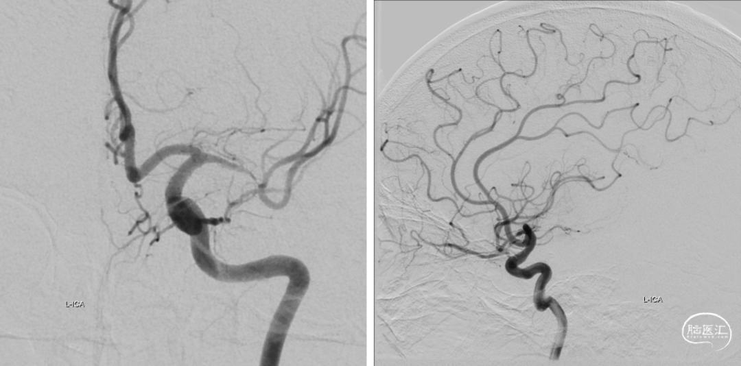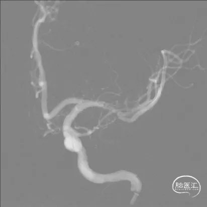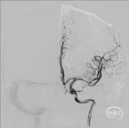 全脑及病变处不同体位造影:狭窄处成形好,未残余明显狭窄,左大脑中动脉主干及各分支显影好。