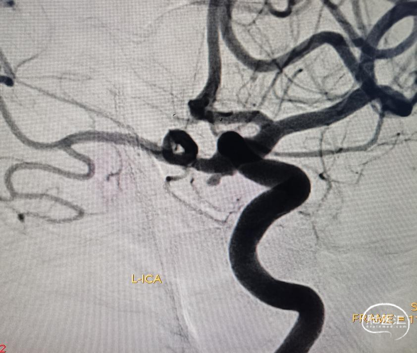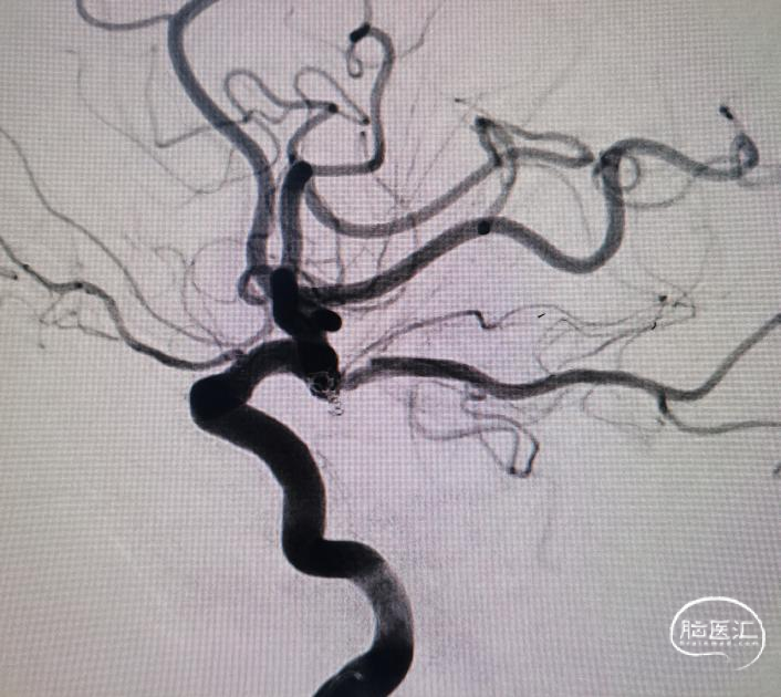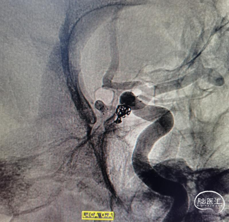 简单看看,还行。患者辗转到位,还是先安排一下造影吧。于是直接造影。原来跟我们评估的差不多,还是左侧后交通动脉瘤。