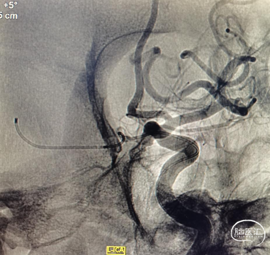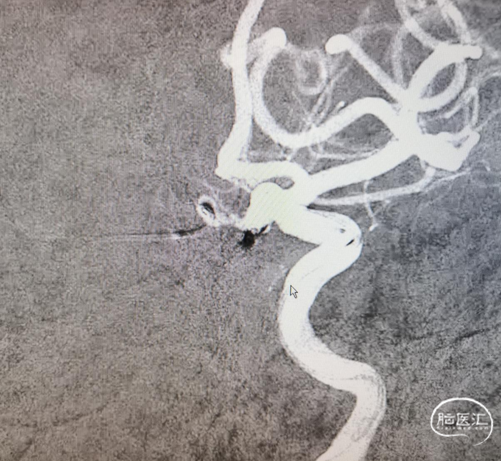 直接放上支架,虽然支架留到颈内动脉,但是如果摆尾不好,后果还是比较惨的,因此选择了一条比较安全的方案。手术顺利。