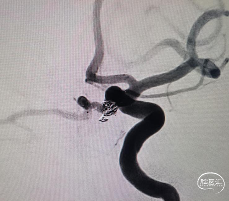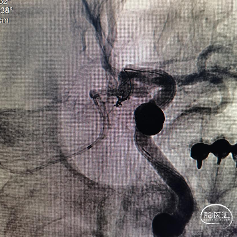 圈已到位,准备压个支架。在后交通动脉起始处再放个圈,加强防护,防止复发。