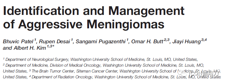 《Frontiers in Oncology》杂志2022年3月 23日在线发表美国Washington University School of Medicine的Bhuvic Patel , Rupen Desai , Sangami Pugazenthi,等撰写的综述《进袭性脑膜瘤的识别和管理。Identification and Management of Aggressive Meningiomas》(doi: 10.3389/fonc.2022.851758. )。