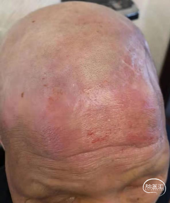 本次病例分享了一例66岁男性胶质母细胞瘤患者病例,主诉“命名不能1月,加重伴记忆力下降10天”,既往体健。术后组织病理检测为胶质母细胞瘤(WHO 4级),采用术后放疗同步TMZ化疗+TMZ辅助化疗+肿瘤电场治疗。患者佩戴电场治疗设备期间出现不良反应,给予相应皮肤治疗后已解决,目前状态稳定。