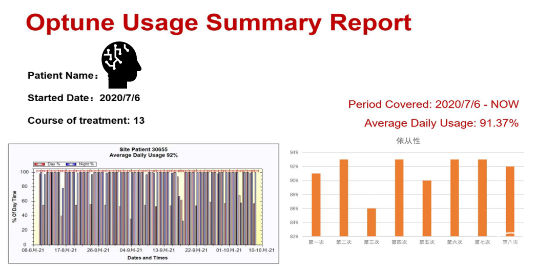 使用肿瘤电场治疗应遵循“早期、足量”原则以最大程度增加患者获益:尽早开始使用肿瘤电场治疗,新发及复发一线患者生存获益更大;患者日均佩戴时间应不低于22小时