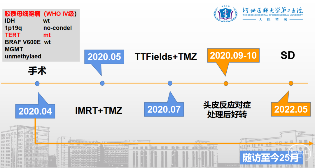神经肿瘤MDT团队讨论:胶质母细胞瘤WHO 4级(IDH野生型),采用Stupp方案+肿瘤电场治疗: