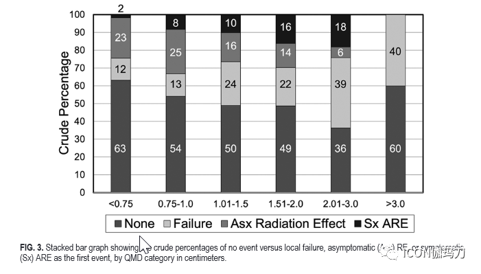 SRS治疗后脑转移灶局部失效的处理和局部失效与ARE的比较是重要的临床问题,特别是SRS越来越多地用于脑转移灶的治疗,以及脑转移瘤患者的生存期越来越长。当患者出现新的和/或复发性脑转移瘤时,有多种治疗方法可供选择。本研究的目的是从FFP和有症状的ARE风险方面评价重复单次分割SRS治疗的有效性和安全性。此外,考虑到区分局部失效和ARE的难度和重要性,我们评估了REs的风险和时间进程,包括无症状和有症状的病例,以帮助解释未来患者重复SRS治疗后的随访影像学。重新评估结果根据病变大小,表示为QMD,而不是靶体积或受照≥10或12 Gy 的体积,实际原因在于,考虑重复SRS治疗病变时,QMD可以很容易地估计为直径,而靶体积需要特殊的软件和努力,在SRS治疗之前,受照10和12 Gy的体积是未知的(for the practical reason that QMD can be readily estimated as di ameter at the time of lesion consideration for repeat SRS, whereas target volume requires special software and effort, and volumes receiving 10 and 12 Gy are not known prior to SRS. )。此外,我们发现QMD是一个预测FFP和ARE风险的稳健的参数。
