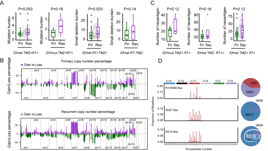 图1:原/复发胶质瘤突变负荷、拷贝数变异、新抗原及突变特征分析