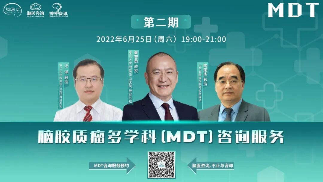由于疫情的不稳定性,线下就诊依旧存在困难,因此,「脑医咨询」推出「视频咨询」服务,这种通过视频咨询、面对面解决患者疑问的全新形式,旨在为广大患友提供更方便、更专业、更全面的服务。脑胶质瘤多学科(MDT)咨询服务第二期,「脑医咨询」携手秦智勇、汪洋、陶荣杰等教授为广大患友带来咨询服务,报名人数有限,成功参与视频咨询的患友,结束后将获赠秦智勇教授一个月的在线图文随访服务(价值400元,不限发言条数),有需要的患友请尽快报名!我们将为您整理电子病历,方便您参与视频咨询。
