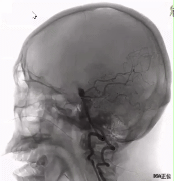 解脱后再次造影,多角度提示动脉瘤瘤腔内有明显造影剂滞留,基底动脉及其分支通畅。