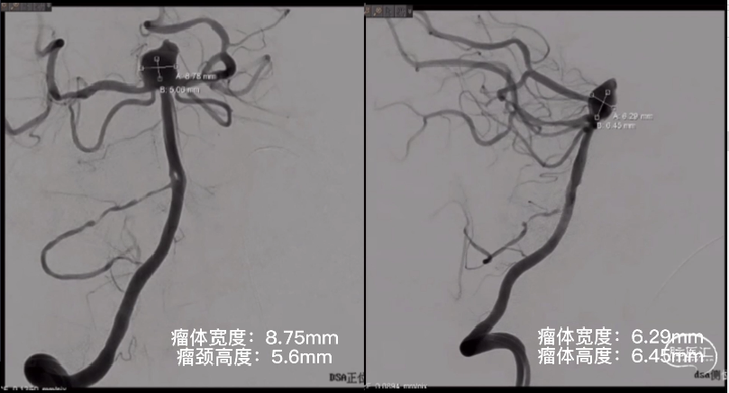 根据测量:动脉瘤瘤体平均宽度为7.5mm,瘤体最小高度5.6mm。