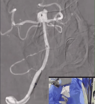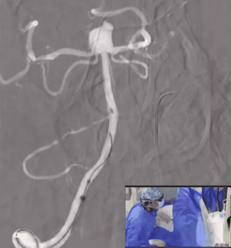 分叉部宽颈动脉瘤一直是介入治疗的难点,传统双支架辅助弹簧圈栓塞瘤颈保护难度大,手术时间长,风险高,总体花费多。使用WEB™瘤内扰流装置支架治疗,能很好解决上述难题,避免使用支架引起的缺血并发症,显著简化术式,只需要单一器械就能完成复杂分叉部宽颈动脉瘤的治疗,术后短期应用抗聚药物,停药后出院,患者恢复更快。