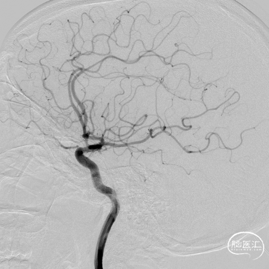 尽管血管内治疗策略和支架性能的进步已经极大的提高了治疗颅内复杂动脉瘤的能力[1-5],但是,对于一些特殊解剖结构动脉瘤的处理仍然是有挑战性的。诸如破裂的真性脉络膜微小动脉瘤的治疗,此类动脉瘤治疗的复杂性因为同时具备了下面4个特点:破裂出血、相对宽颈、微小、动脉瘤的位置距离脉络膜前动脉和颈内动脉连接处有一段距离。相对于血管内治疗而言,手术夹闭脉络膜前动脉瘤有相对更高的脉络膜动脉相关的梗塞风险[6]。在栓塞动脉瘤的同时维持颈内动脉和脉络膜前动脉的通畅,几个常见的血管内治疗技术,诸如单纯栓塞、球囊辅助栓塞和支架辅助栓塞也是挑战性的。此外,血流导向装置植入对位于粗大分支血管的破裂动脉瘤也不是理想的选择[7]。我们采用分期治疗的方法成功治疗了一例破裂的真性脉络膜前动脉瘤:急性期给与单纯栓塞,二期(一个月后)给与LVIS支架植入。