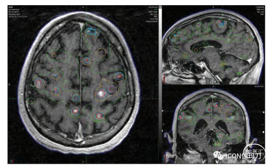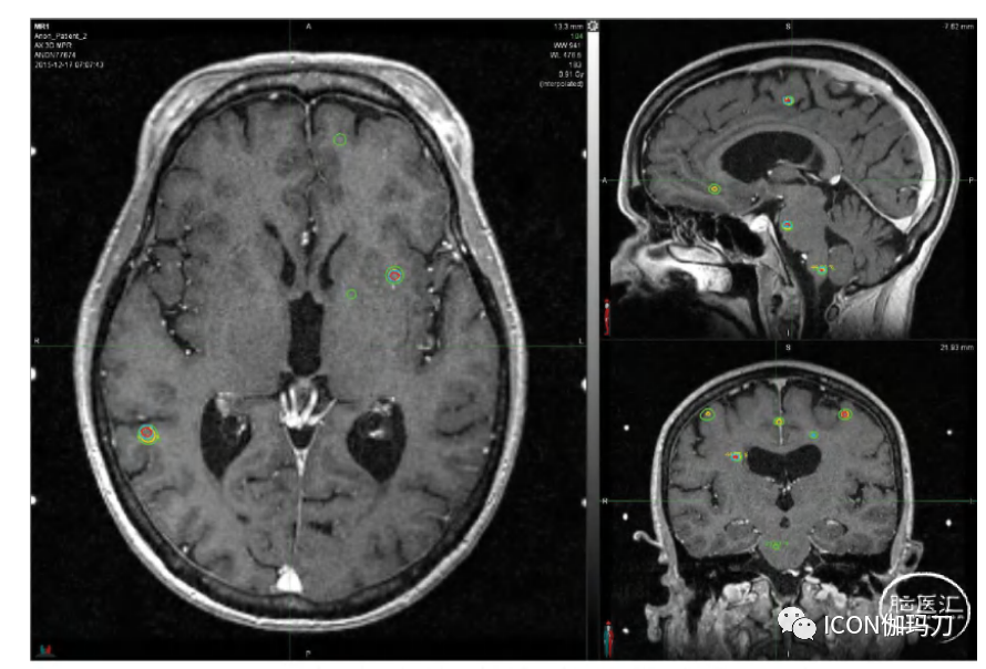 数十年来,SRS一直用于脑转移瘤的治疗,可向肿瘤提供靶向治疗剂量的照射,同时避免对正常组织进行不必要的照射。肿瘤临床试验联盟NCCTG 0574和欧洲癌症研究和治疗组织(EORTC) 22952-26001试验均显示,在有≦3个脑转移瘤的患者中,单独SRS比SRS联合WBRT的认知退化更少,生活质量更好。在伽玛刀SRS治疗早期,由于多种原因,使用SRS治疗转移瘤的上限为3或4个肿瘤。从实际的角度来看,计划病例和提供治疗所需的时间是一个主要障碍。此外,尚不清楚治疗超过4个转移瘤的毒性,不使用WBRT会对生存产生不利影响。此外,该地区的第一个随机试验随机选择了2-4个肿瘤作为纳入标准。