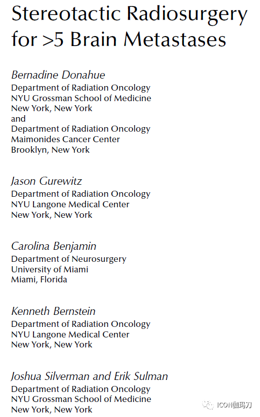 几年来,治疗多达10个转移性肿瘤的经验增加,包括来自国家综合癌症网络(NCCN)的指南都作出修改,以反映在这种情况下使用SRS的选择(NCCN 2020)。尽管缺乏随机数据,神经外科医生和放射肿瘤科医生越来越愿意单独使用SRS治疗有10个以上肿瘤的患者。几个因素的共同作用导致了这一结果,包括使治疗大量病变更有效的技术变化,以及上述III期试验的结果,该试验证实了WBRT与单独SRS相比的不良神经认知和生活质量(QOL)影响。这些进展与系统性治疗的重大进展相吻合,这些进展使患者活得更长,因此,人们对WBRT的晚期影响的担忧加剧了,这些影响可能在延长的生存期中表现出来。