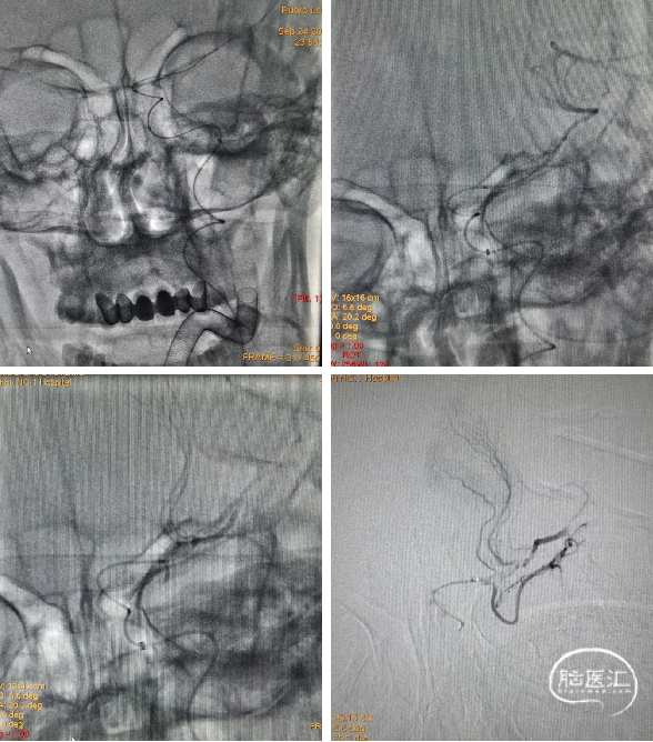 术后2月来院复查造影:左侧颈内动脉起始部狭窄严重,左侧大脑中动脉M1段血流通畅。予以植入颈动脉支架。