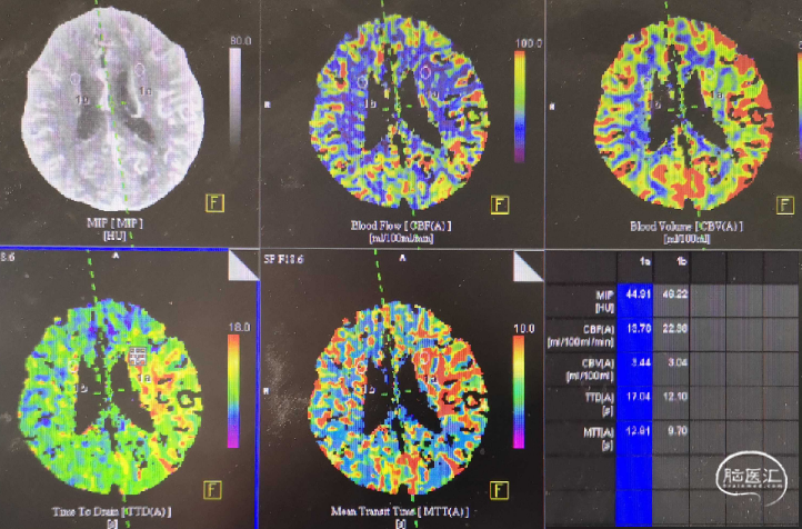 病史:患者自3天前无明显诱因出现言语不清,右侧肢体无力,跌倒在地,持续约数分钟后恢复正常,可自行行走,共发作两次,症状类似,后右侧肢体无力症状持续存在,遂至**医院要就诊,行头颅CT检查未见明显异常,予以阿加曲班等药物应用,效果欠佳。5小时前上述症状较前明显加重,出现意识不清、右侧肢体偏瘫,无法站立、不能持物,完善头颅MRA示左侧颈内动脉、大脑中动脉闭塞。22:10至我院就诊,查CT示左侧大脑中动脉高密度影,左侧内囊低密度影。CTP示左侧大脑半球低灌注代偿期。
