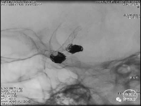 2015-11-03行右侧后交通动脉瘤LVIS+弹簧圈栓塞,左侧动脉瘤瘤颈残留,未处理。