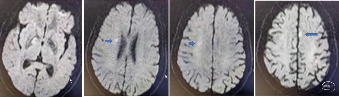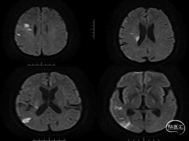 重要影像结论:右侧放射区、右侧基底节区、左侧额叶近大脑镰处多发急性梗死。