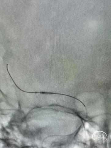 利用赛诺神畅 NOVA DES®颅内药物洗脱支架锚定后释放,血管再通,mTICI 3级,局部动脉给药替罗非班(0.2ug/kg.min)约3ml,持续15分钟。静脉(0.1ug/kg.min)持续泵入24小时后改为口服双抗。