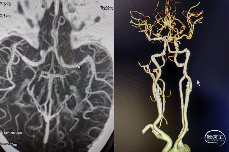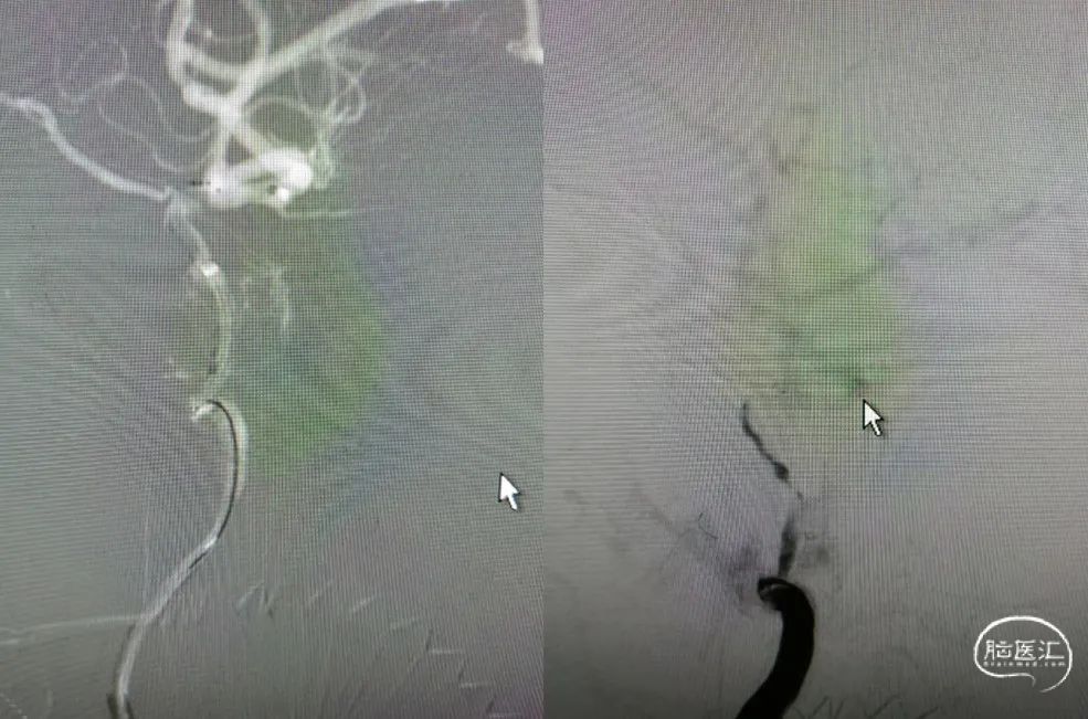 重要影像结论:右侧颈内动脉岩骨段管腔内不清晰,眼动脉段远端管腔较对侧明显缩小。