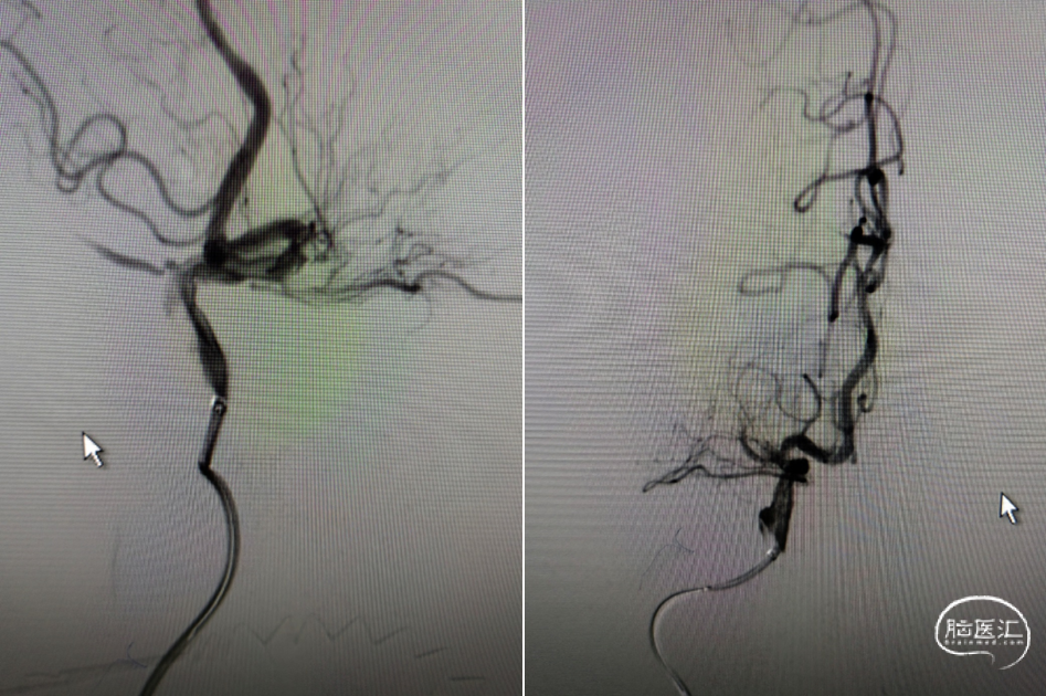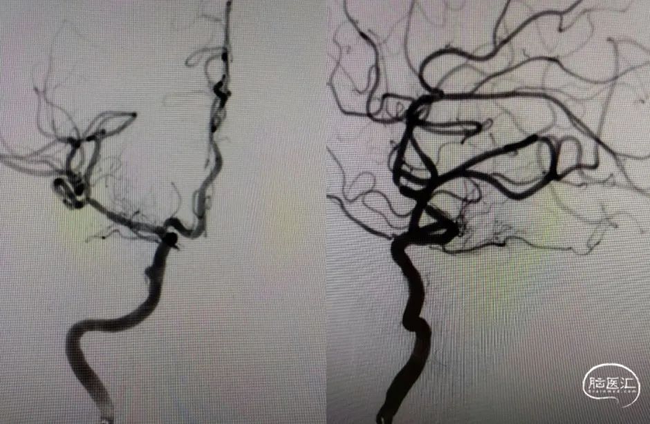 脑动脉造影提示:右侧大脑中动脉M1段重度狭窄(80%)。