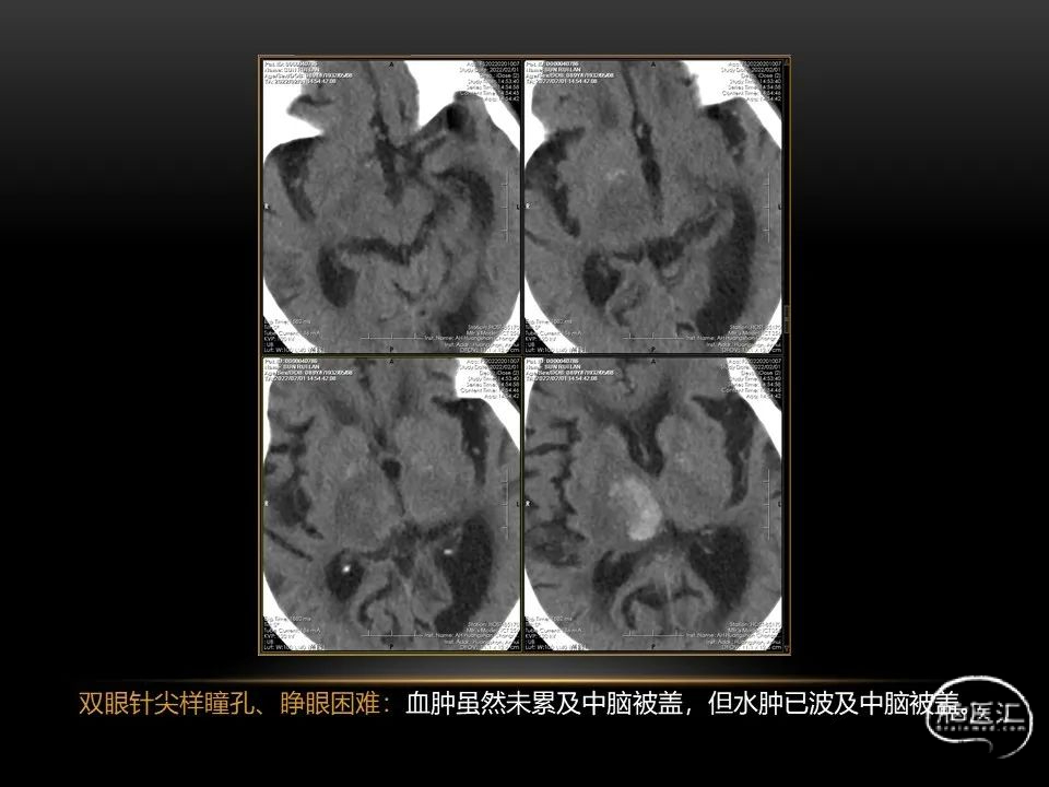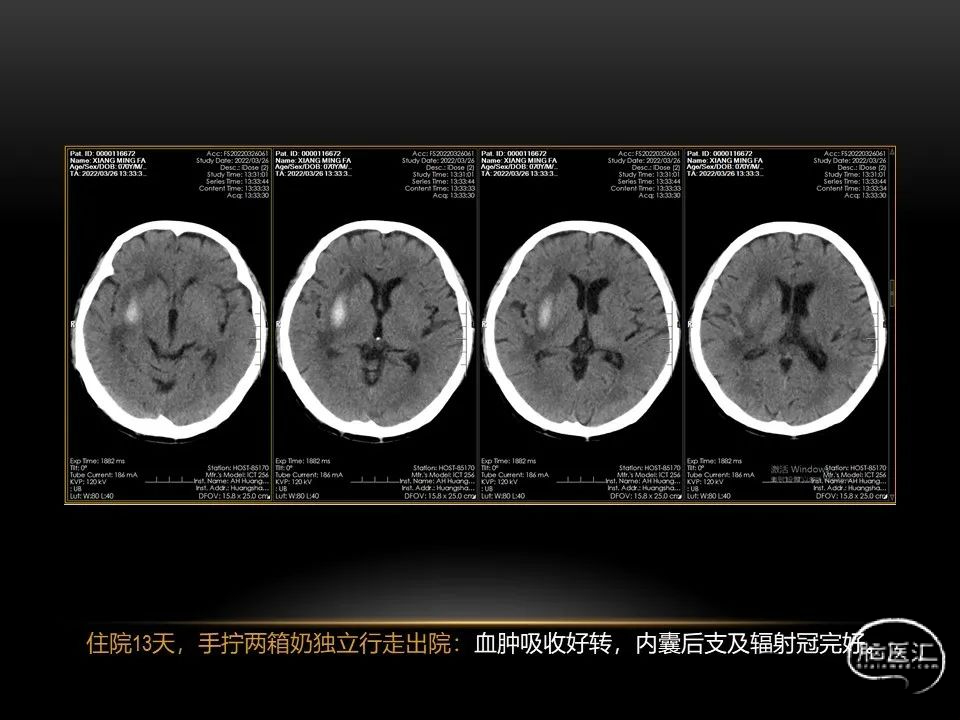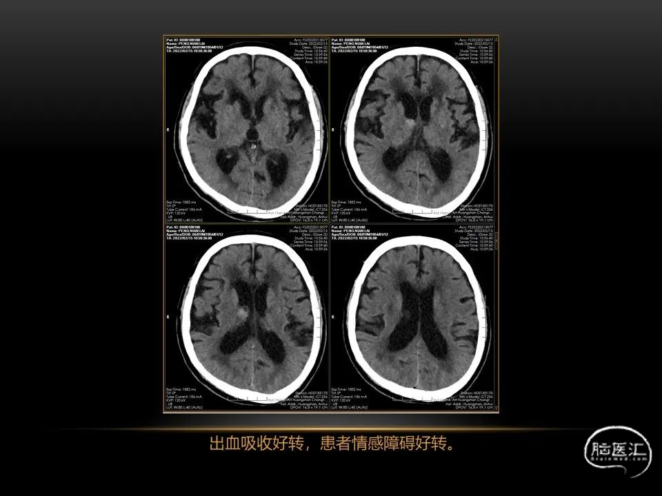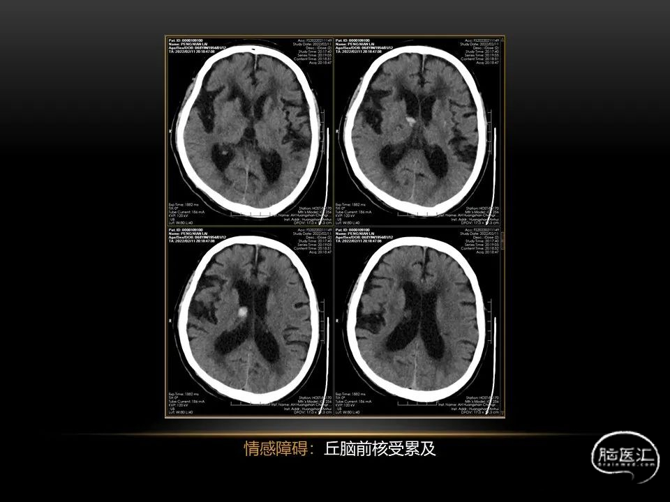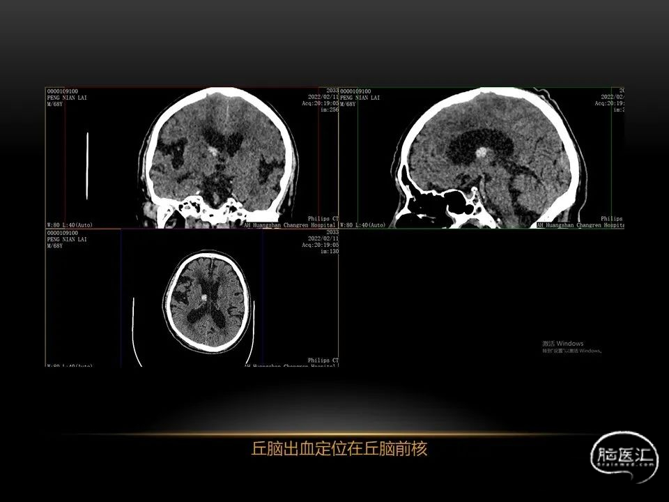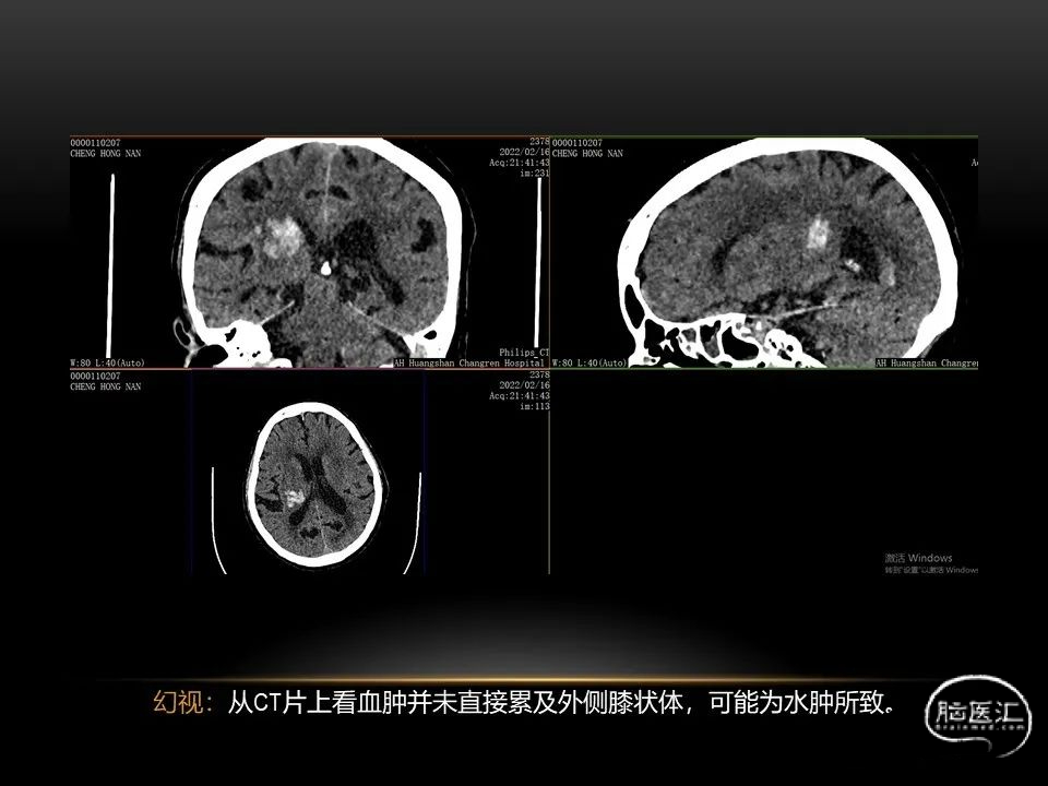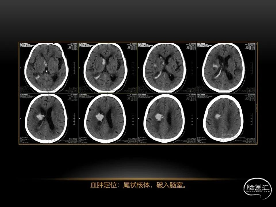 自发性脑出血不仅仅累及内囊后肢才会出现偏瘫及偏身感觉障碍,病变累及大脑脚或辐射冠同样有可能有类似症状和体征。内囊、辐射冠、大脑脚等结构之间是延续的,只是不同区域不同名称而已。定位诊断需要对解剖结构概念清晰,读片准确辨认,灵活掌握。
