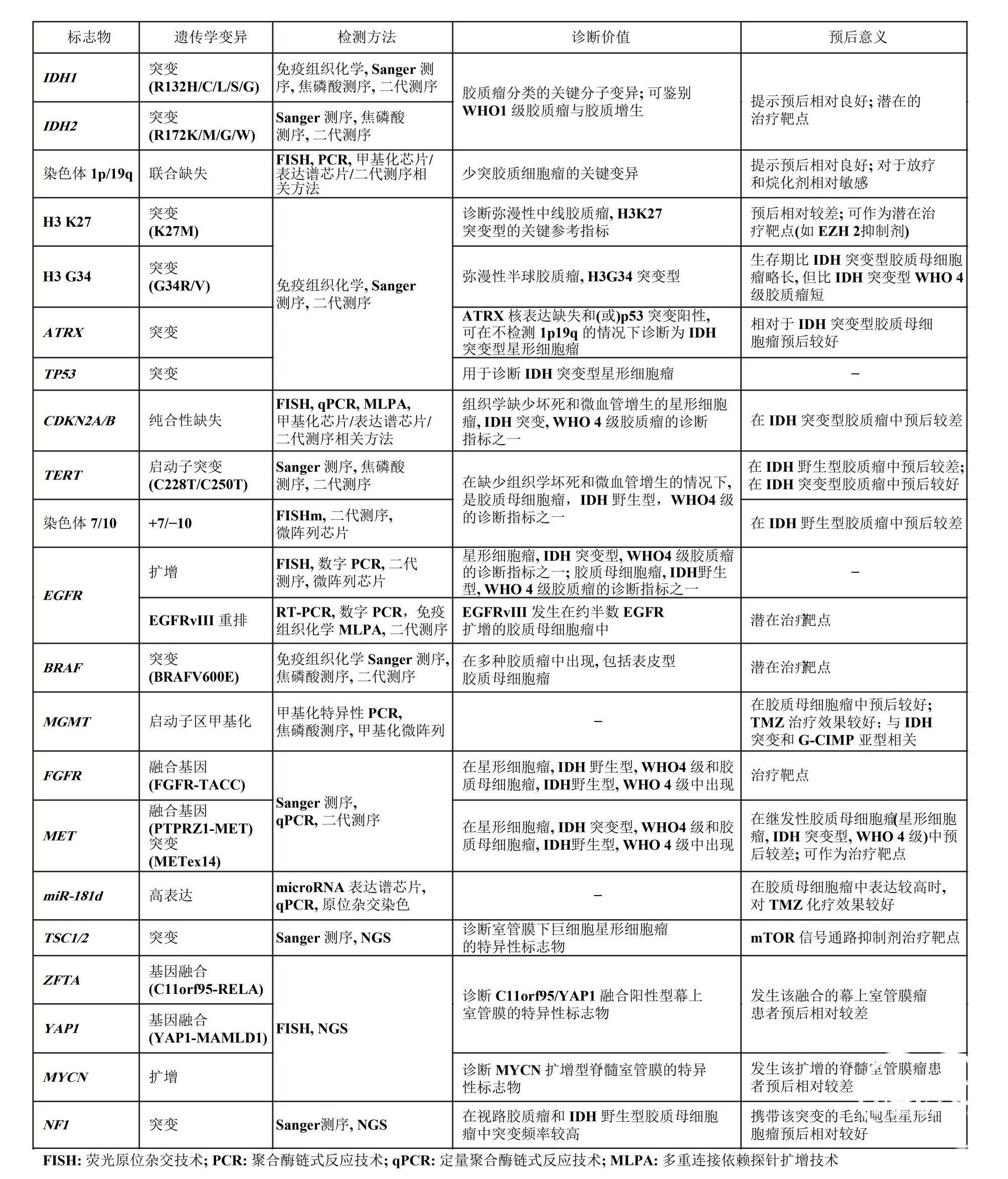 图1 胶质瘤常用分子病理学检测指标推荐
