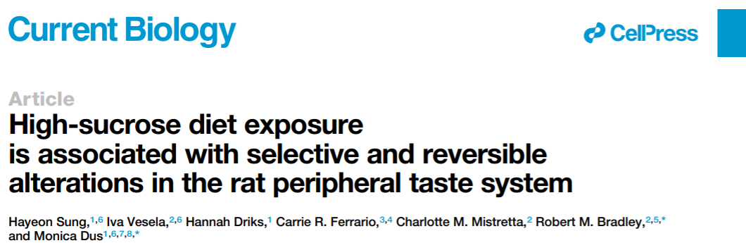 《当代生物学》(Current Biology)的新研究就借助小鼠发现,高糖饮食会降低味觉系统对甜味的感知能力,短期内喂食高糖饮食的小鼠,甜味信息从舌头传递大脑的反应下降了约一半。