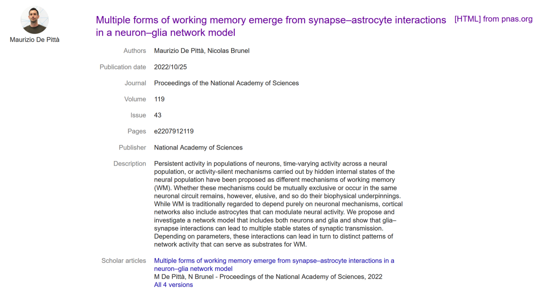 “我们知道星形胶质细胞可以释放特定的化学信号,而我们已经证实,这种信号可以使得工作记忆产生不同的解读,”Maurizio De Pittà博士说。“揭示神经元和星形胶质细胞之间的化学作用可能是研究工作记忆的关键;这也告诉我们,当我们有工作记忆缺陷时,可能会出现什么问题,而这些出现的问题通常是大脑发出的预警信号。”