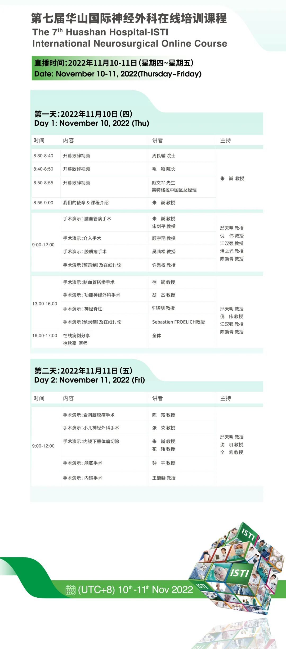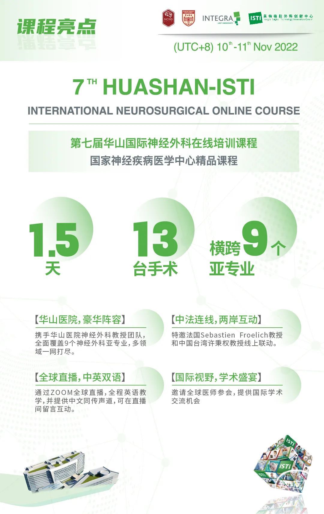 此次华山ISTI国际课程特邀Sebastien Froelich教授(法国)、许秉权教授(中国台湾)线上连线,超过13台线上手术演示以及线上病例分享。