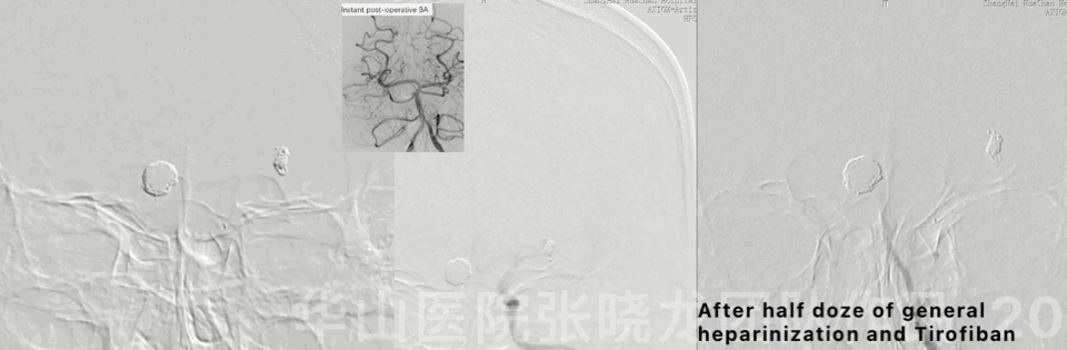 对于重要分支的动脉瘤,术前术后抗血小板治疗可能降低血栓形成风险。