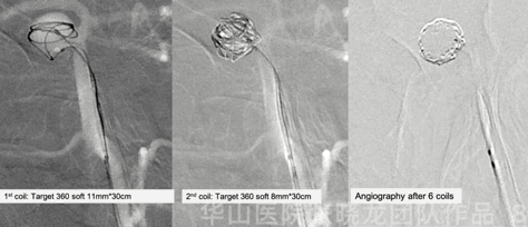 应避免小圈填塞瘤颈部,因为这可能闭塞小脑上动脉起始部。