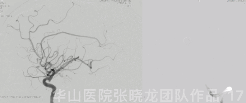 视频 2. 术后10月随访,左侧大脑中动脉瘤致密栓塞,未见复发。
