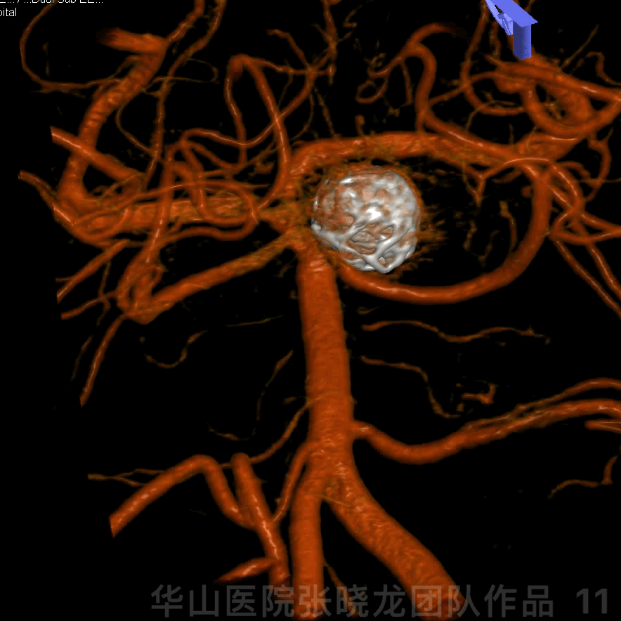 图 4 GIF. 右侧小脑上动脉发自动脉瘤颈。