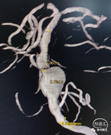 远端(延长多少);动脉瘤颈(原始长度);近端(短缩/延长多少)