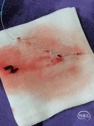 可见取出血栓量较大,在支架远端抓捕篮内有部分细小血栓被成功捕获。