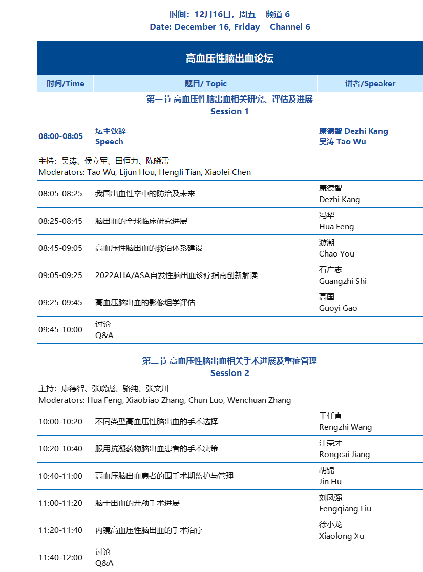 探讨出血性卒中防治、脑出血影像学进展、高血压脑出血救治体系建设、脑出血手术治疗进展以及重症管理……