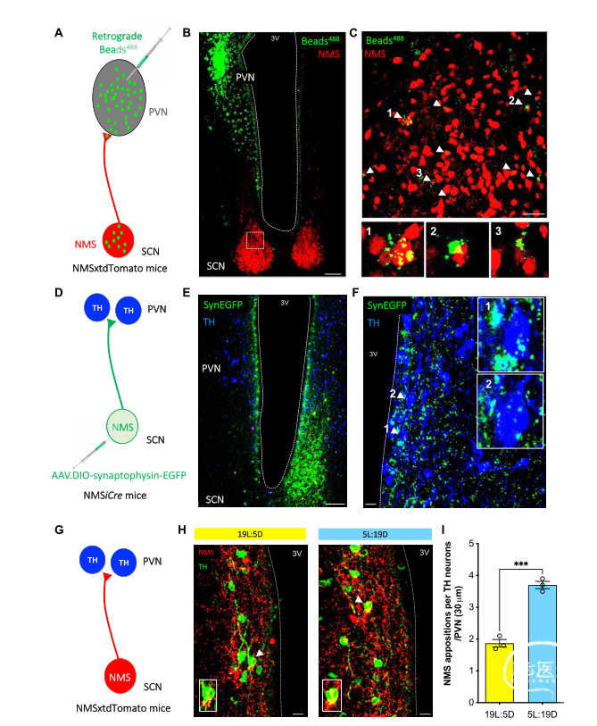 这项研究的重要意义在于,揭示了SCN-PVN环路在适应季节光周期变化的分子机制,NMS神经元通过协调的多突触神经递质转换来调节下丘脑的功能,并影响行为反应。