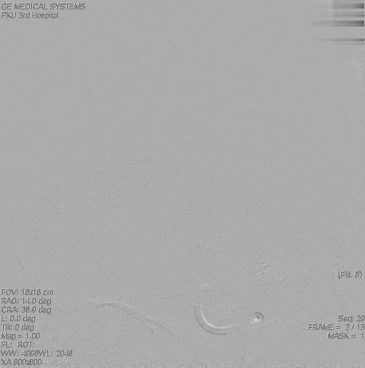 通路建立:置换6F长鞘,导丝引导5F MPA导引导管及6F中间导管进入左侧C1段,造影确认工作位,Synchro导丝引导下带入SL-10进入远处MCA上干,Synchro导丝引导下带入SL-10进入动脉瘤腔备栓塞用