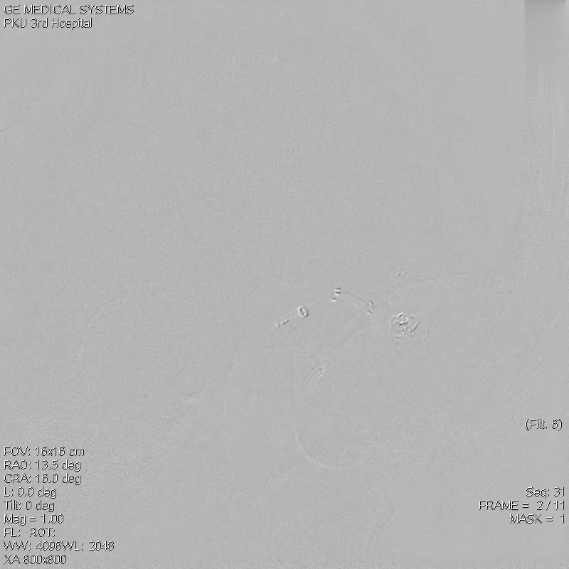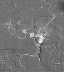 弹簧圈栓塞:通过Echelon-10微导管依次送入弹簧圈多枚,栓塞至效果满意。