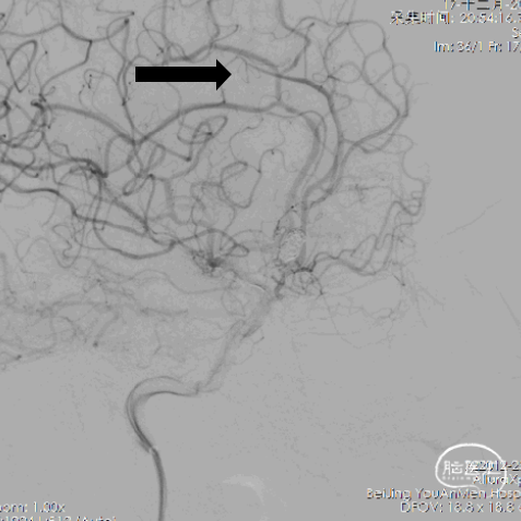 9、动脉给予替罗非班后,左侧大脑前动脉血流未见好转。