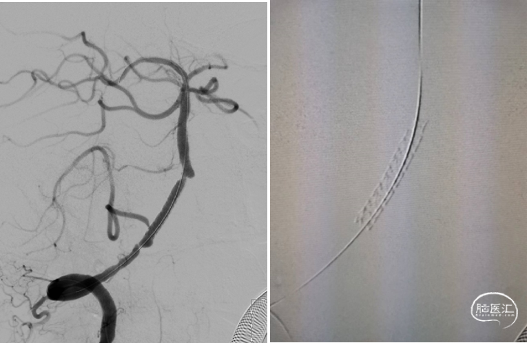 器械选择考量:狭窄节段较重,年龄不大,为避免术后再狭窄,故选用赛诺神畅 颅内药物洗脱支架NOVA DES®。
