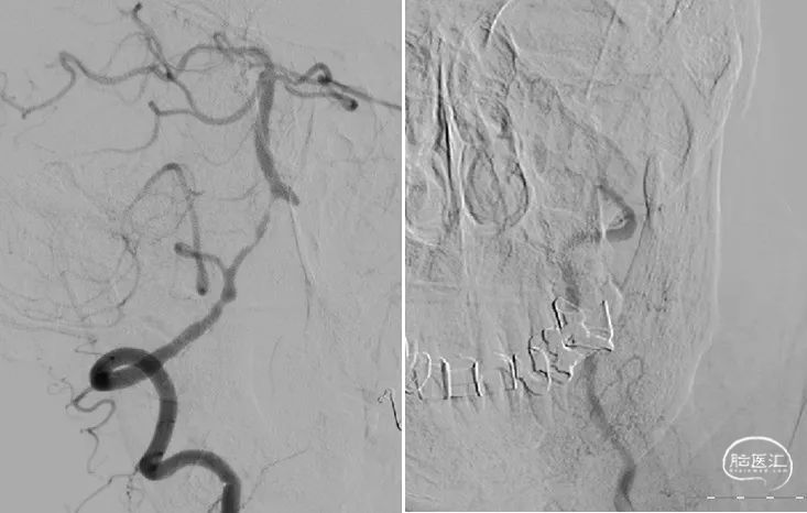 2. 患者后循环仅剩右侧椎动脉,同时V4段可见重度狭窄,为尽可能减少对血流的干扰,故尽可能选择管腔小一些的通路导管。