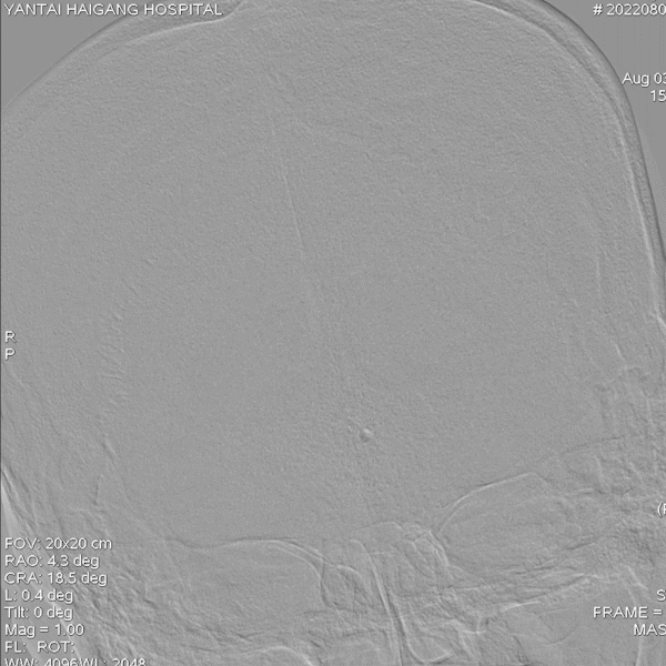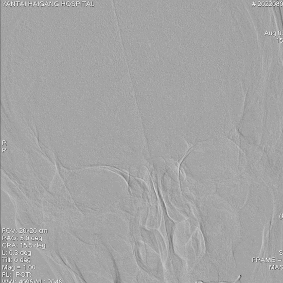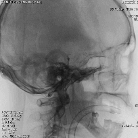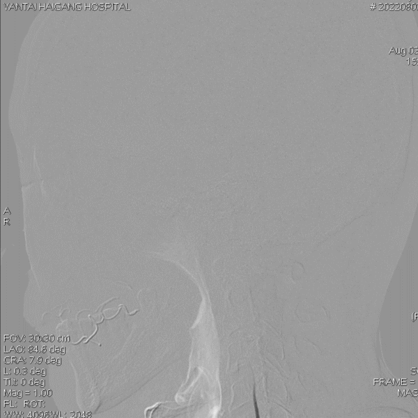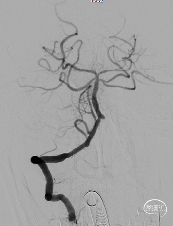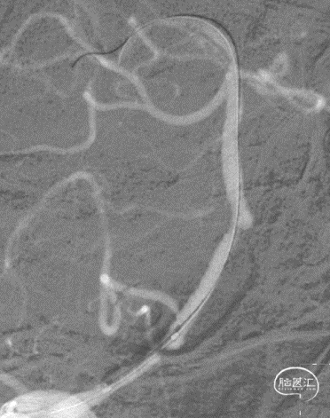 病变情况分析:右桡动脉穿刺,置6F桡动脉鞘管,5F多功能导管在泥鳅导丝辅助下脑血管造影提示:右椎动脉V4段重度狭窄(约90%)。