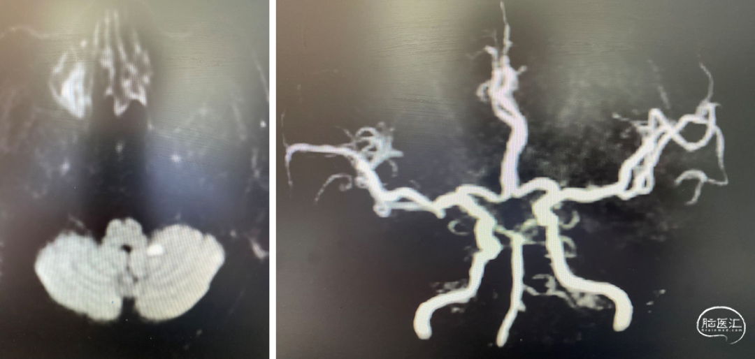 重要影像结论:桥脑新发亚急性梗死灶,右侧椎动脉重度狭窄。