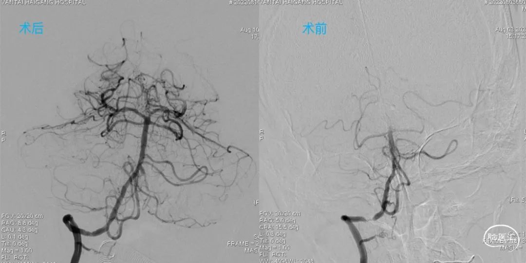 入院检查:言语略含糊,行动如常不利,肌力:左侧肢体肌力5-级,右侧肢体肌力5级,瞳孔正常,对光反射灵敏。神经系统评分NIHSS(0),mRS(0)。